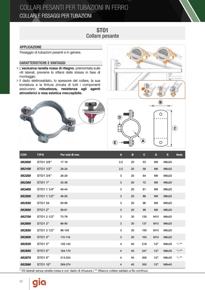* Viti laterali senza ranella rossa e con dado di chiusura / ** Attacco collare saldato a filo continuo.