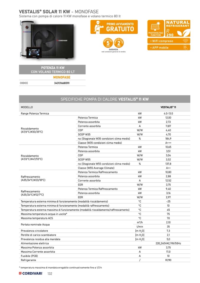 * temperatura massima di mandata erogabile continuativamente fino a 1/2 h