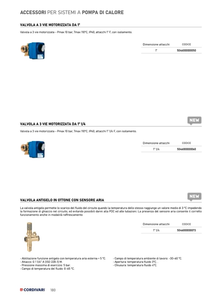 • Campo di temperatura del fluido: 0–65 °C.