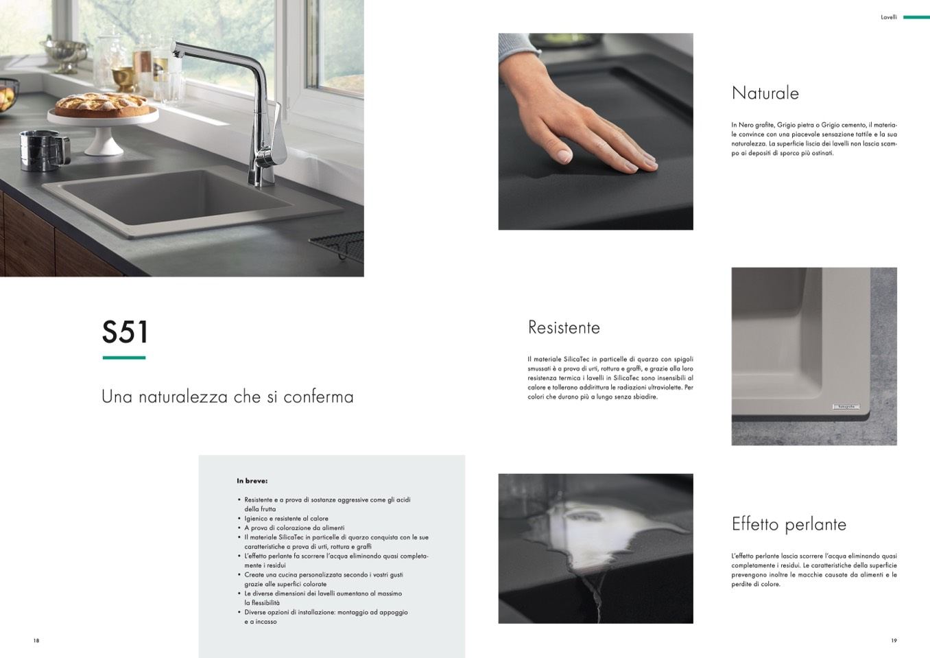 naturalezza. La superficie liscia dei lavelli non lascia scam