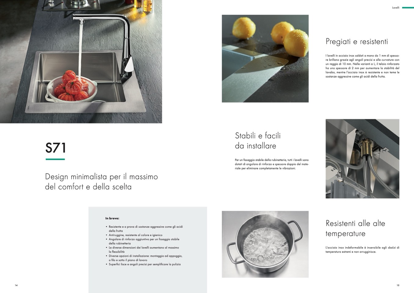 lavabo, mentre l’acciaio inox è resistente e non teme l