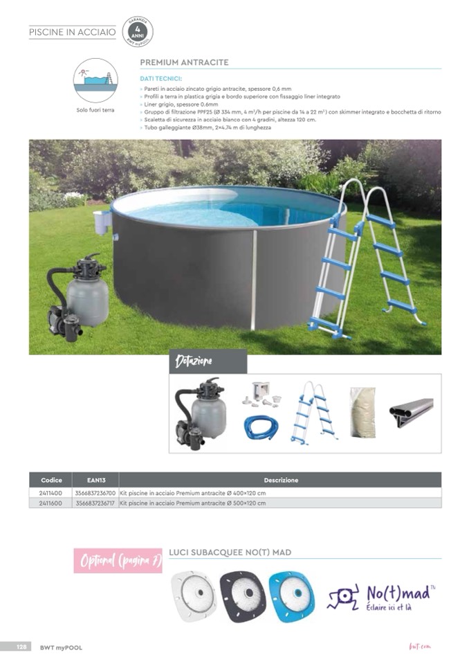 Kit piscine in acciaio Premium antracite Ø 400x120 cm