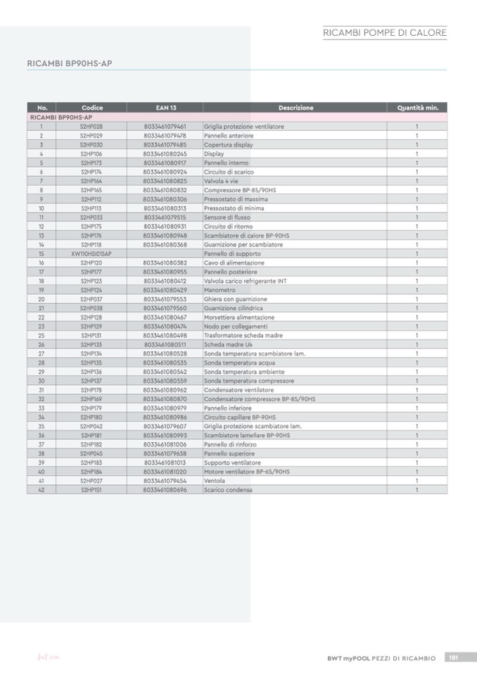 RICAMBI BP90HS-AP