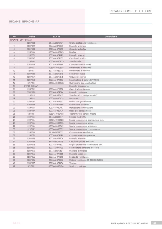 RICAMBI BP140HS-AP