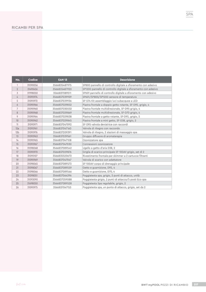 BWT myPOOL PEZZI DI RICAMBIO