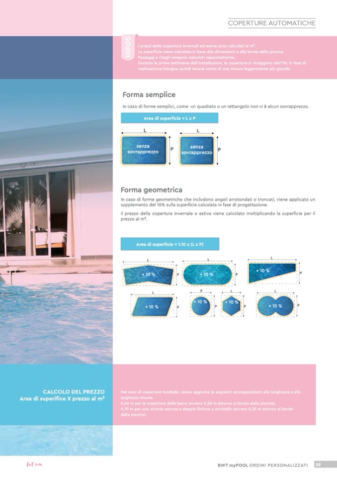 La superficie viene calcolata in base alle dimensioni e alla forma della piscina.