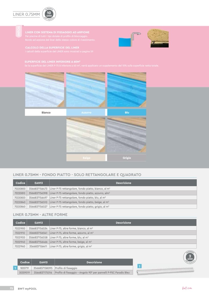 Bordo ad arpione del liner dello stesso colore di rivestimento.
