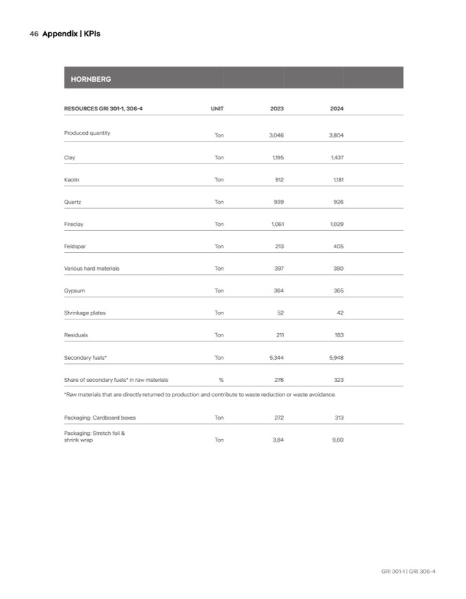RESOURCES GRI 301-1, 306-4