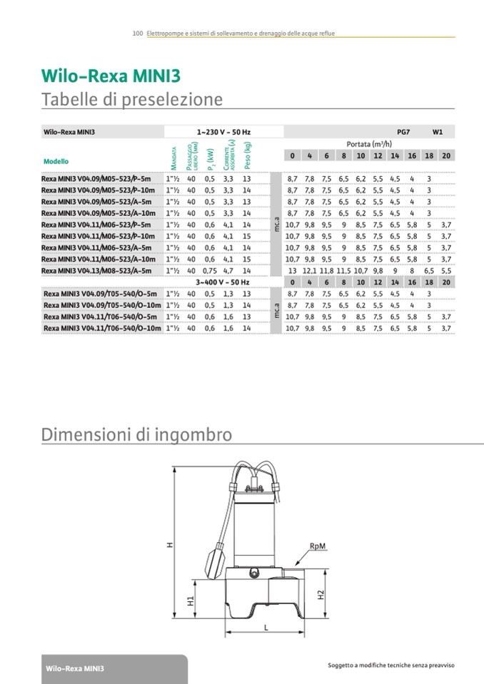 100 Elettropompe e sistemi di sollevamento e drenaggio delle acque reue
