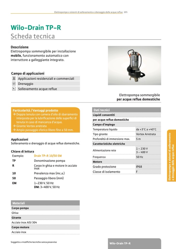 Elettropompe e sistemi di sollevamento e drenaggio delle acque reue 105