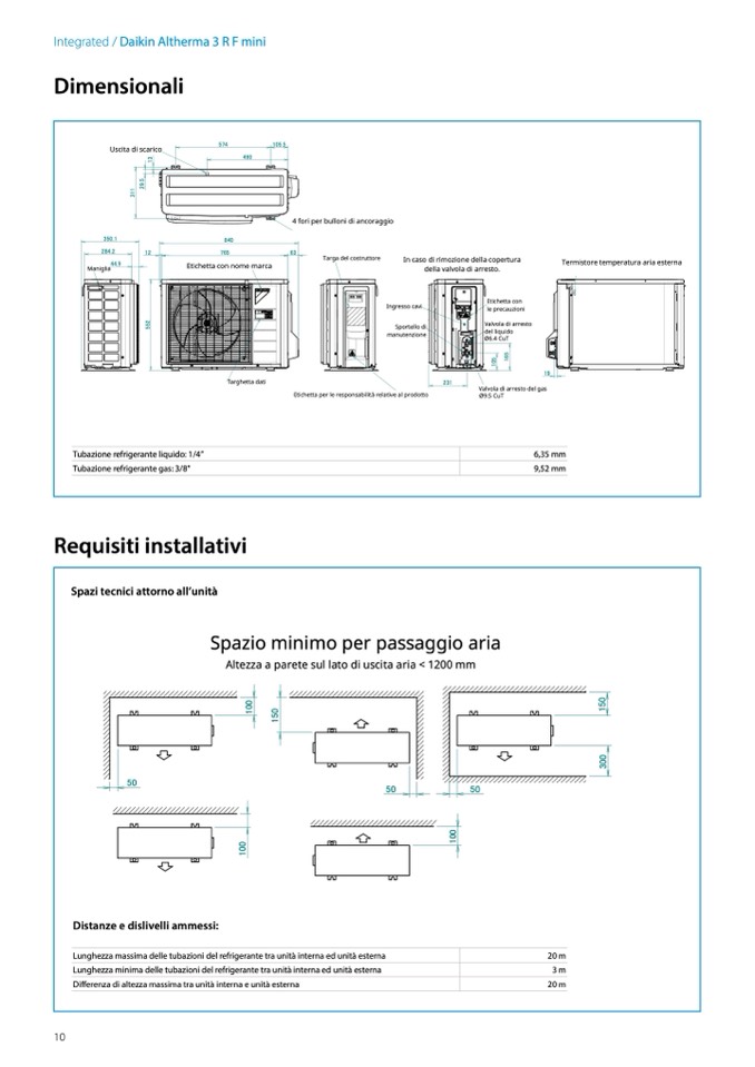 Lunghezza minima delle tubazioni del refrigerante tra unità interna ed unità esterna