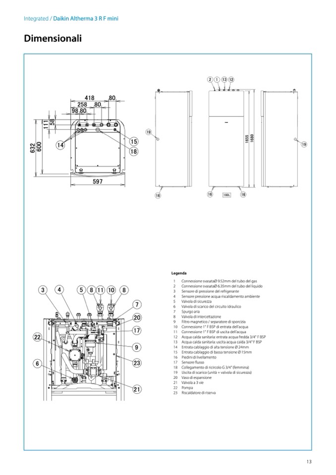 13 Acqua calda sanitaria: uscita acqua calda 3/4" F BSP