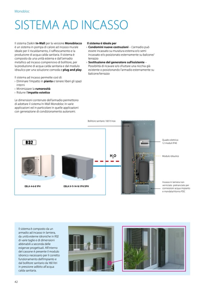 Il sistema Daikin In-Wall per la versione Monoblocco