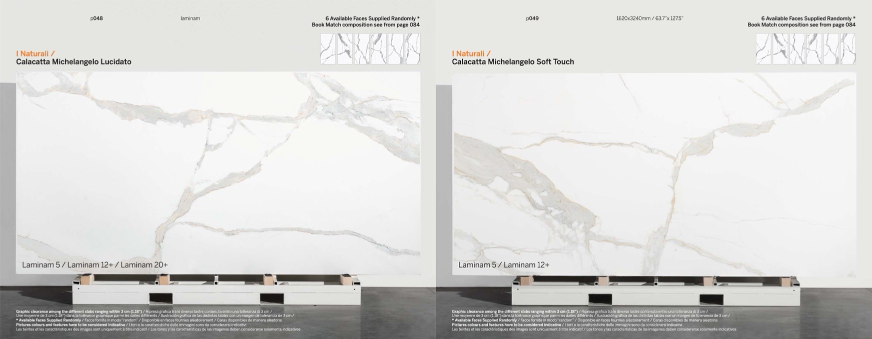 Graphic clearance among the different slabs ranging within 3 cm (1.18”) / Ripresa grafica tra le diverse lastre contenuta entro una tolleranza di 3 cm /