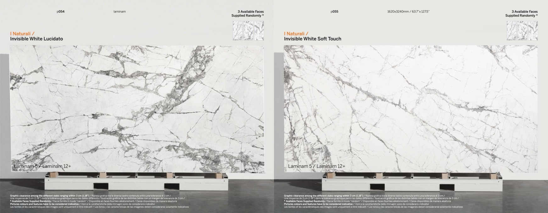 Graphic clearance among the different slabs ranging within 3 cm (1.18”) / Ripresa grafica tra le diverse lastre contenuta entro una tolleranza di 3 cm /
