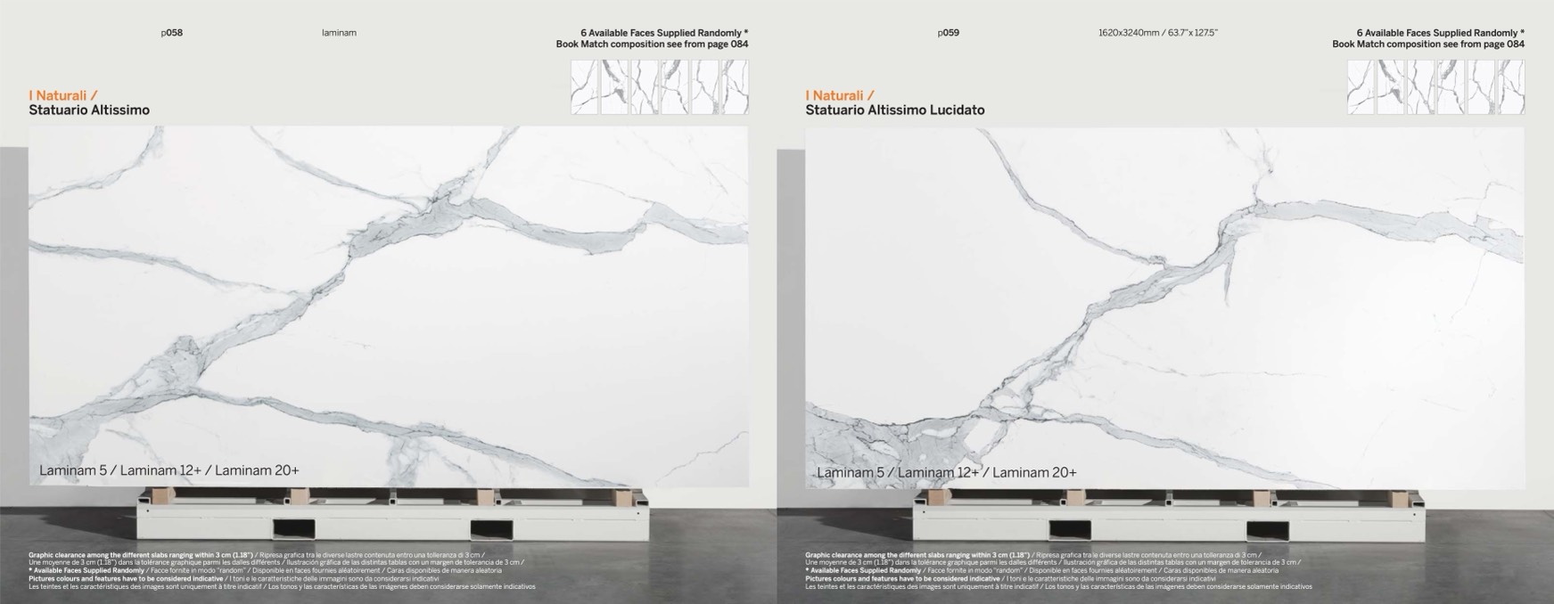 Graphic clearance among the different slabs ranging within 3 cm (1.18”) / Ripresa grafica tra le diverse lastre contenuta entro una tolleranza di 3 cm /