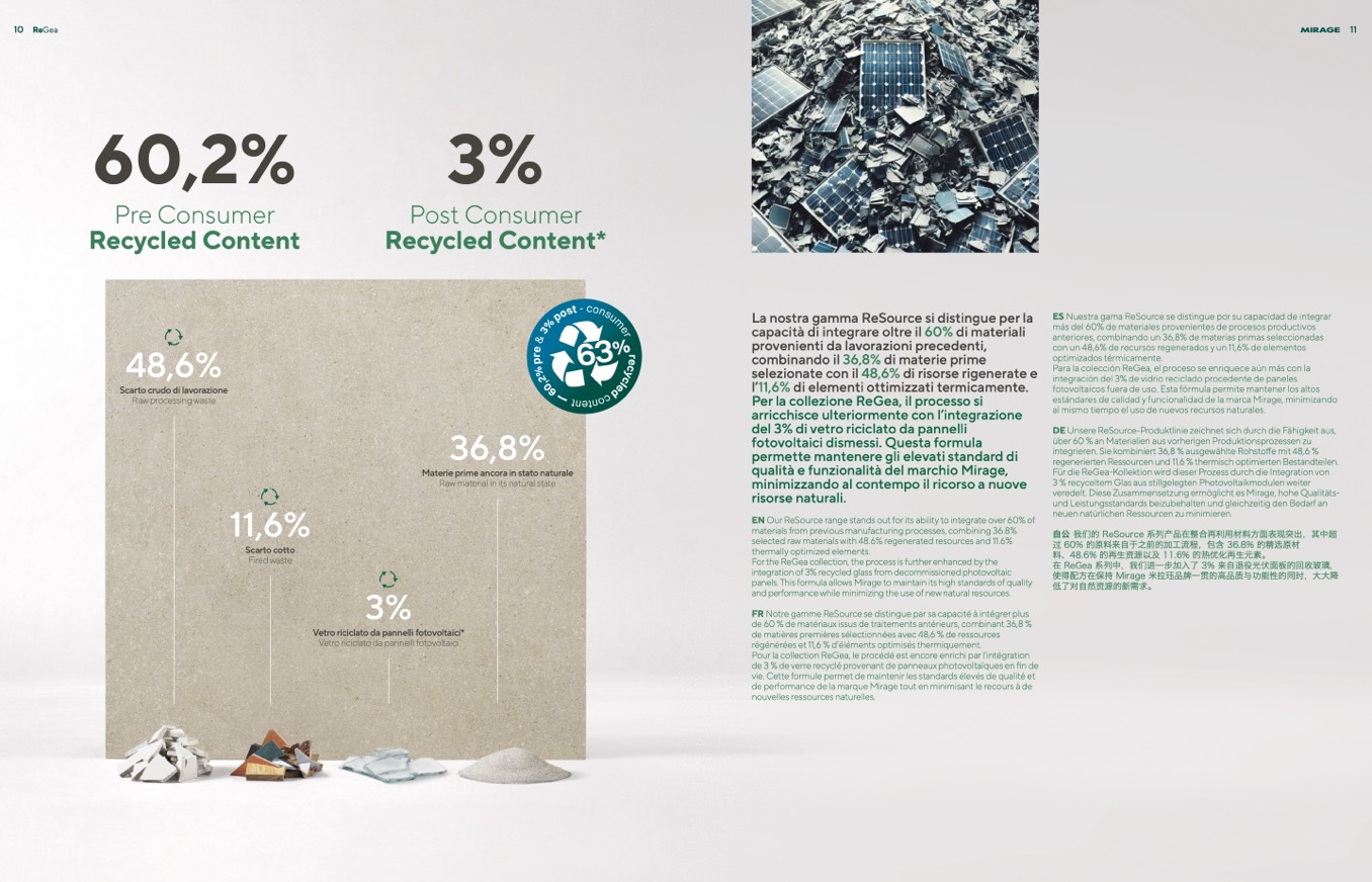 在 ReGea 系列中,我们进一步加入了 3% 来自退役光伏面板的回收玻璃,