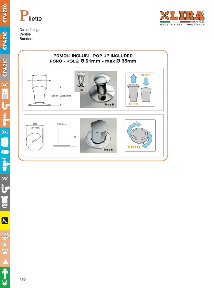FORO - HOLE: Ø 21mm - max Ø 35mm