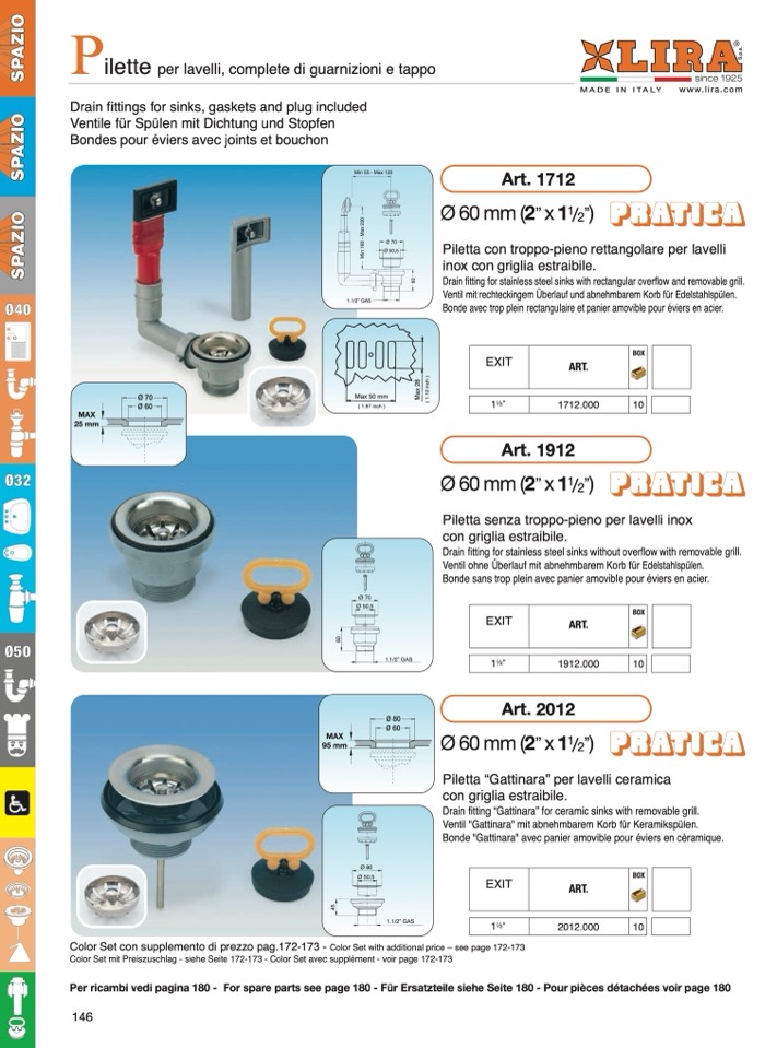 Per ricambi vedi pagina 180 - For spare parts see page 180 - Für Ersatzteile siehe Seite 180 - Pour pièces détachées voir page 180