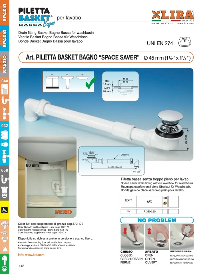 Drain fitting Basket Bagno Bassa for washbasin
