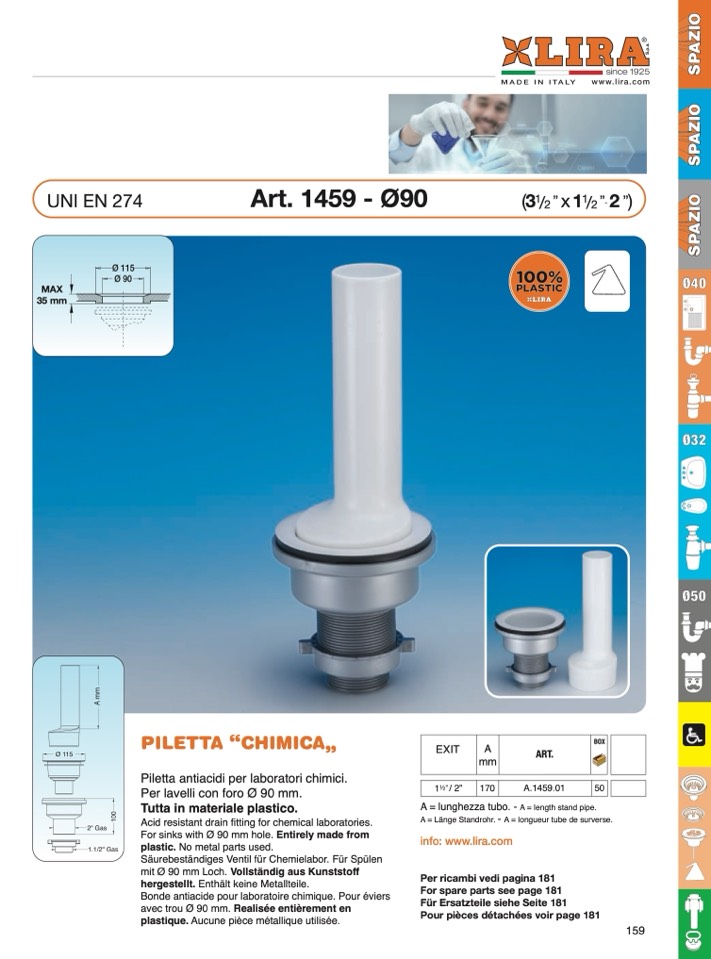 Bonde antiacide pour laboratoire chimique. Pour éviers