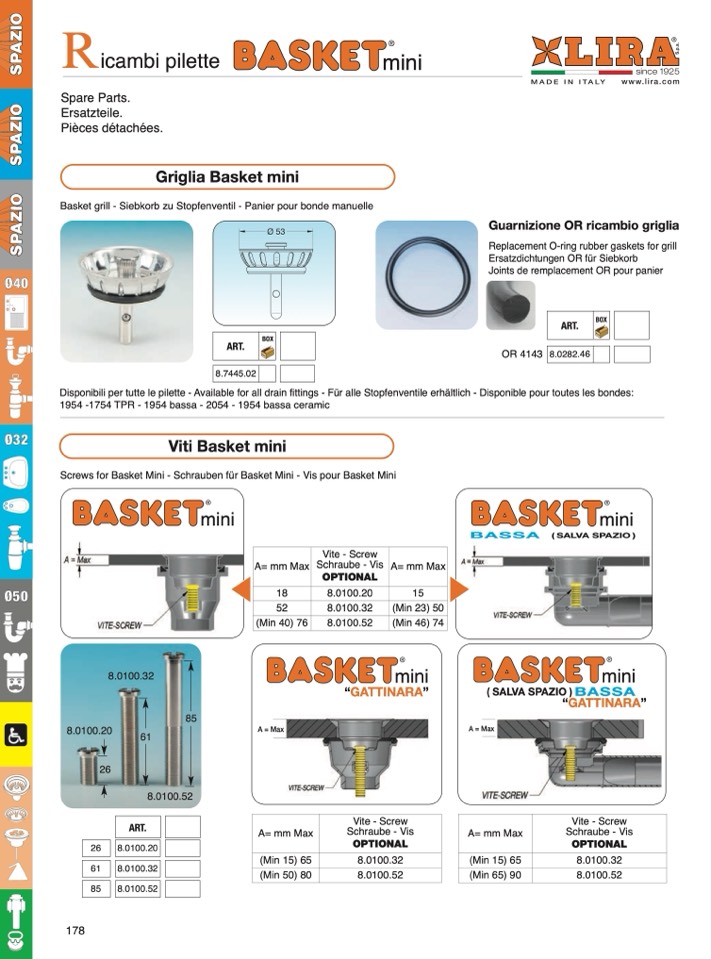 Disponibili per tutte le pilette - Available for all drain fittings - Für alle Stopfenventile erhältlich - Disponible pour toutes les bondes:
