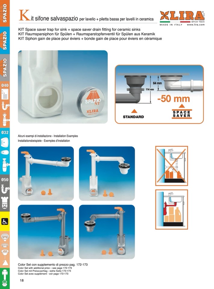 KIT Siphon gain de place pour éviers + bonde gain de place pour éviers en céramique