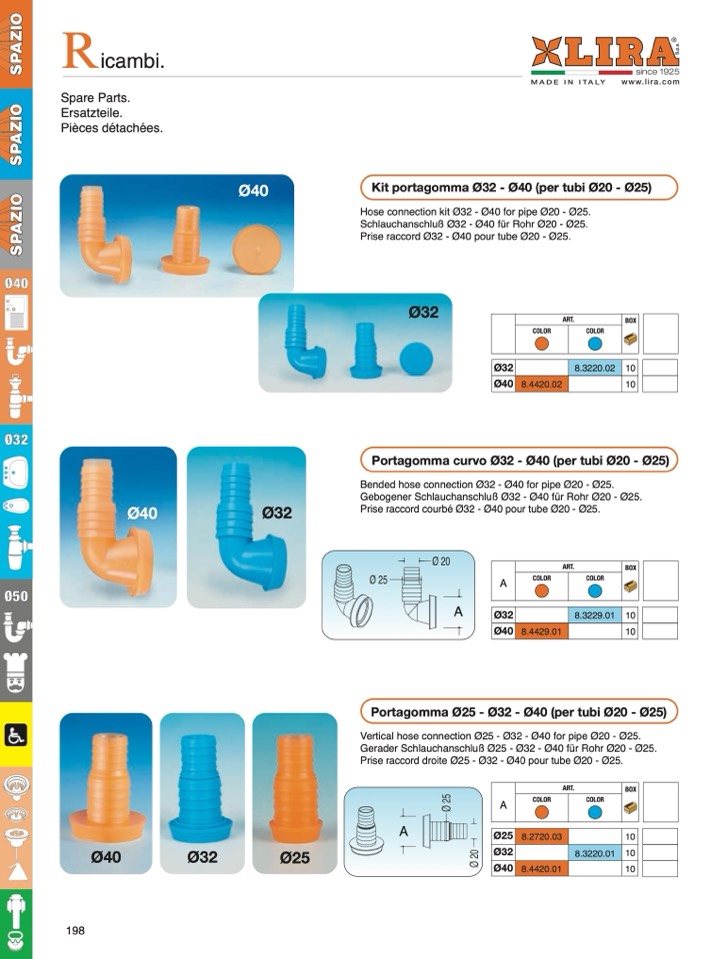 Vertical hose connection Ø25 - Ø32 - Ø40 for pipe Ø20 - Ø25.