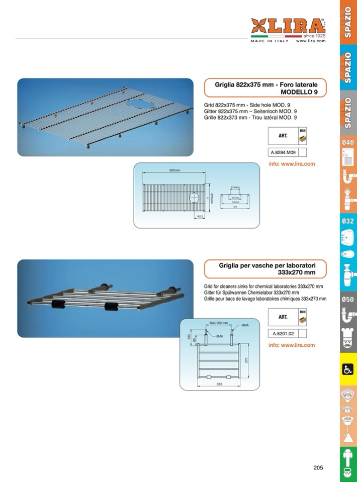 Grid 822x375 mm - Side hole MOD. 9