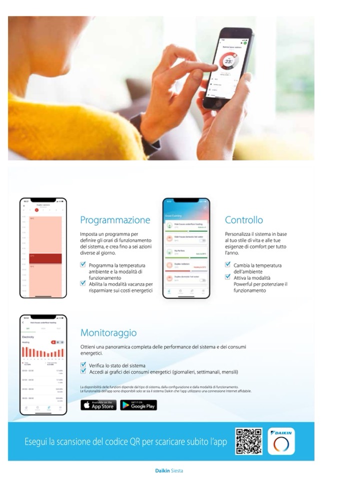 Le funzionalità dell’app sono disponibili solo se sia il sistema Daikin che l’app utilizzano una connessione Internet affidabile.