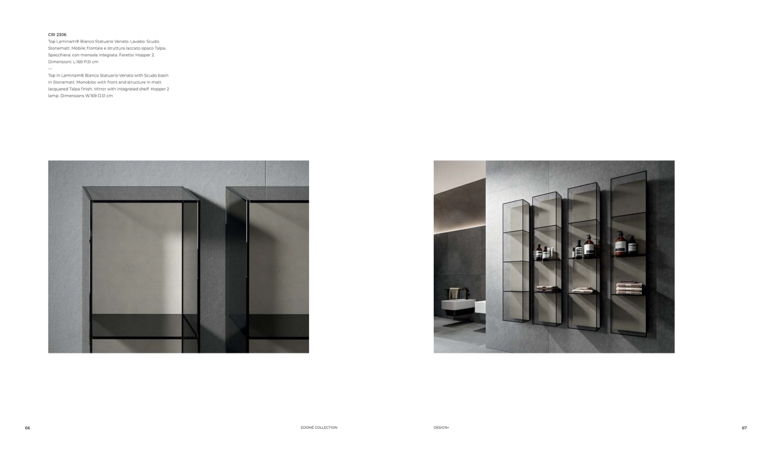 lacquered Talpa finish. Mirror with integrated shelf. Hopper 2