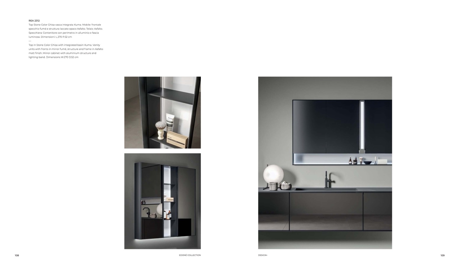 units with fronts in mirror fumé, structure and frame in Asfalto