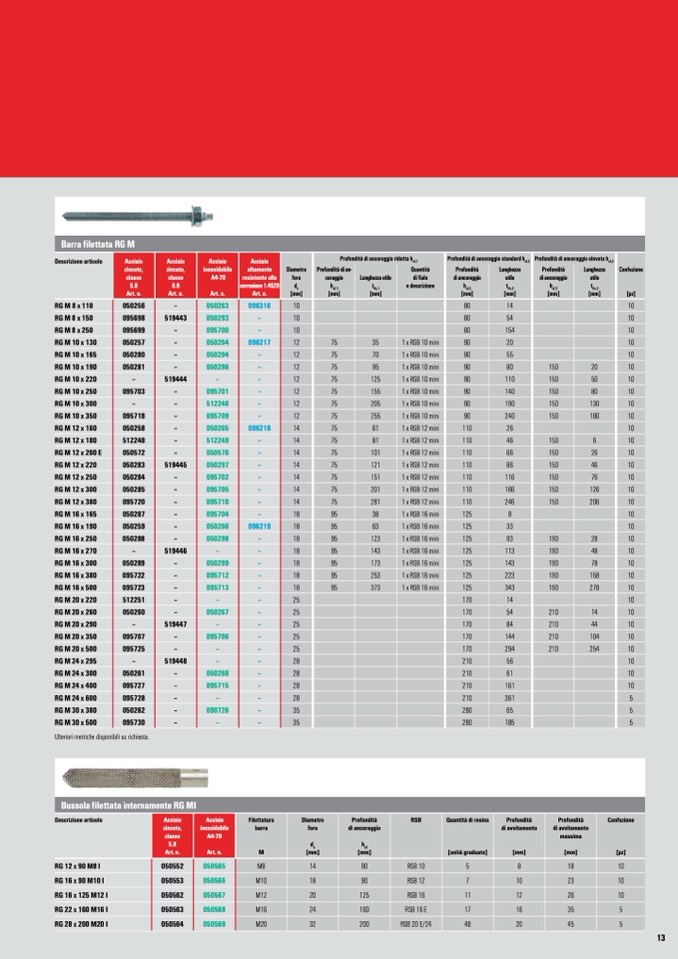 Barra filettata RG M