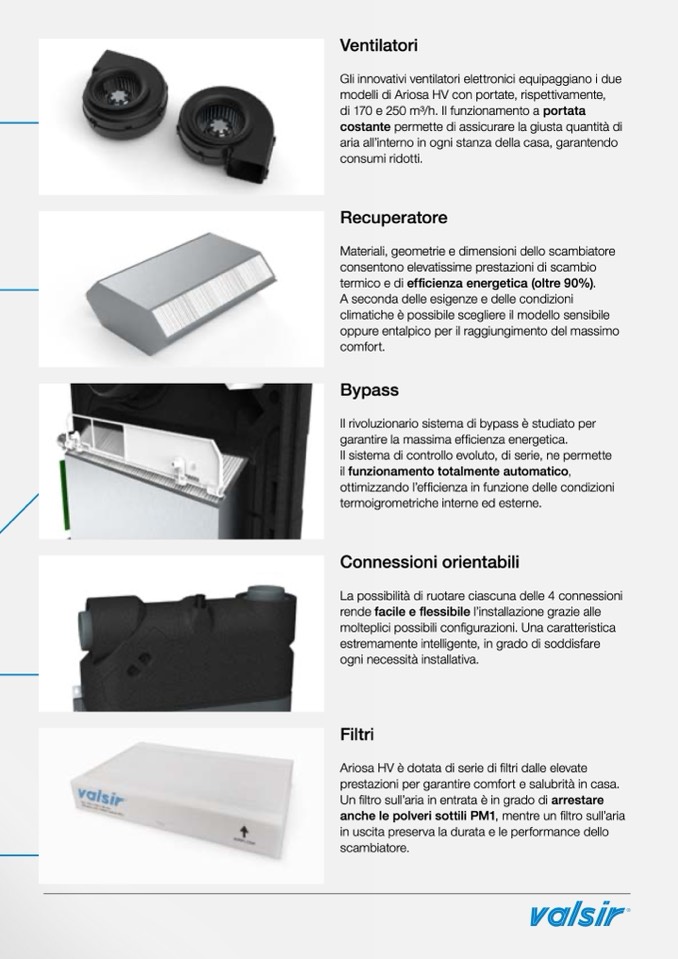 Ariosa HV è dotata di serie di filtri dalle elevate