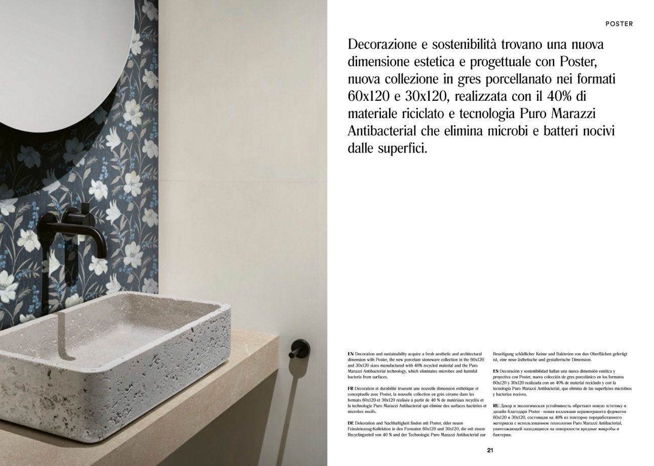Recyclinganteil von 40 % und der Technologie Puro Marazzi Antibacterial zur