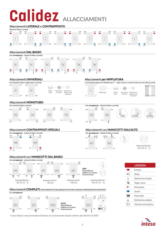 * Corpo Valvola e testa termostatica Oventrop con funzionamento liquido conforme alla UNI EN 215:2007.