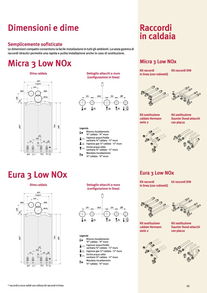 sanitaria 3⁄4” caldaia - 1⁄2” muro