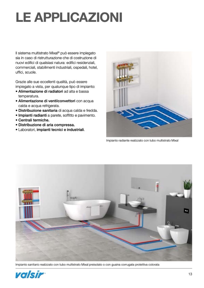 Impianto sanitario realizzato con tubo multistrato Mixal preisolato o con guaina corrugata protettiva colorata