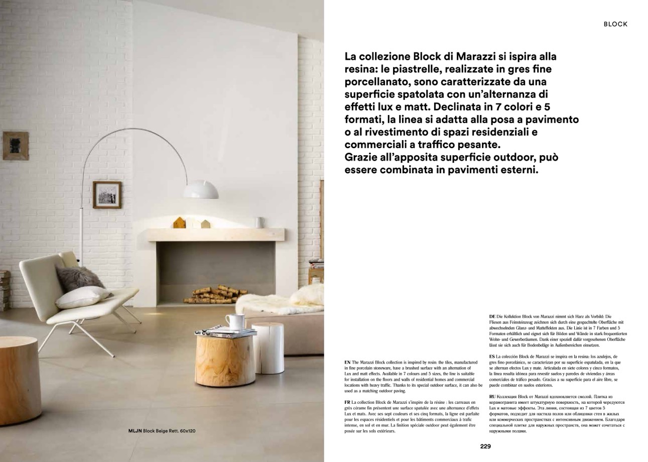 EN The Marazzi Block collection is inspired by resin: the tiles, manufactured