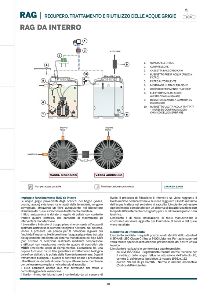 lampada UV (fortemente consigliato) per il riutilizzo in ingresso nella