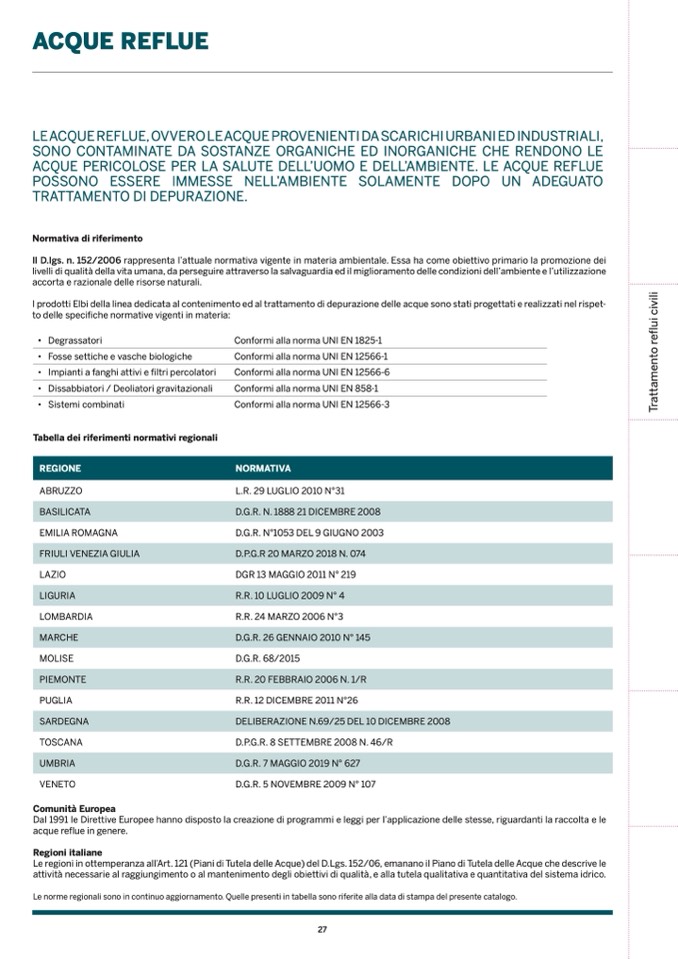 I prodotti Elbi della linea dedicata al contenimento ed al trattamento di depurazione delle acque sono stati progettati e realizzati nel rispet-