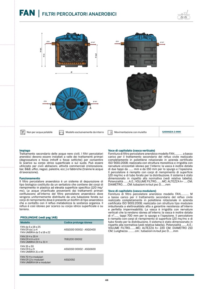 Potenzialità .......A.E.; VOLUME FILTRO........MC; ALTEZZA h= .....CM;