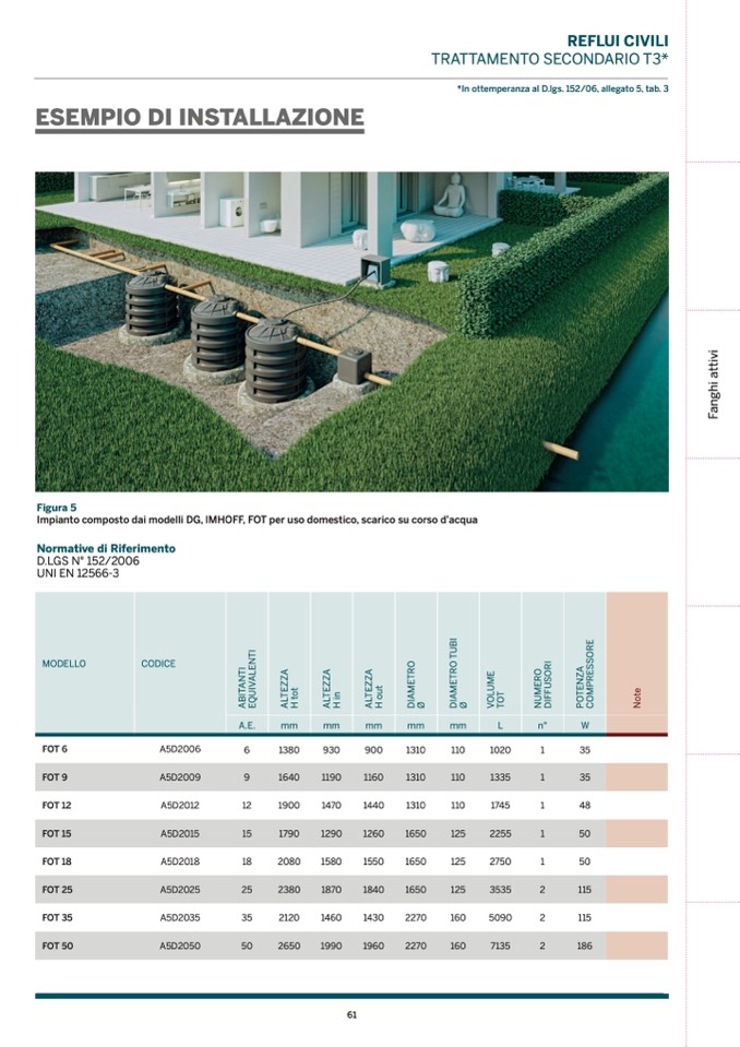 Impianto composto dai modelli DG, IMHOFF, FOT per uso domestico, scarico su corso d’acqua