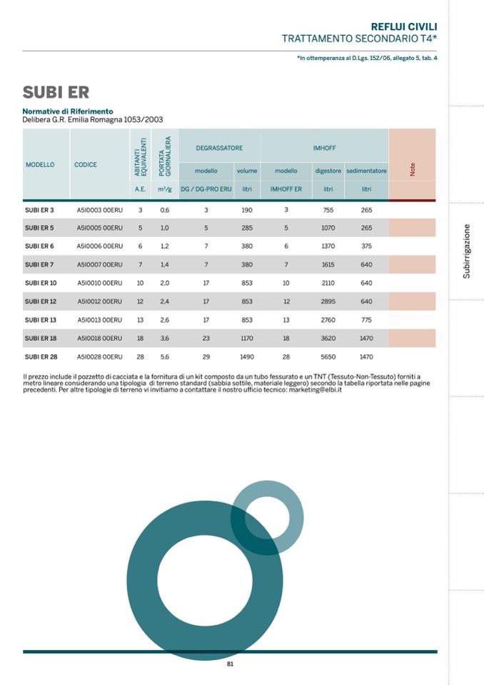 precedenti. Per altre tipologie di terreno vi invitiamo a contattare il nostro ufficio tecnico: marketing@elbi.it