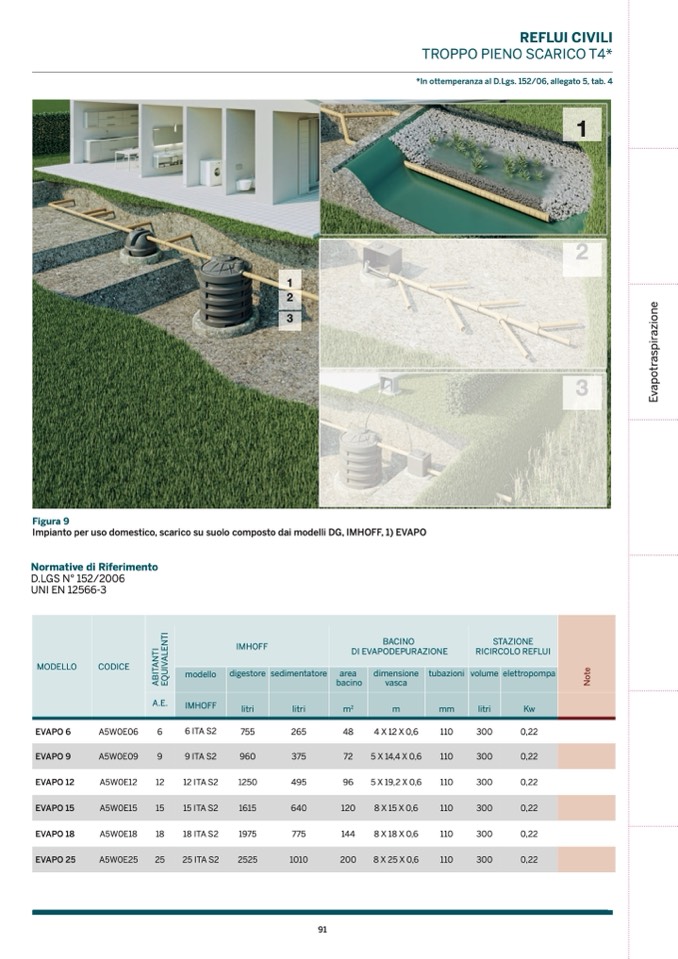 Impianto per uso domestico, scarico su suolo composto dai modelli DG, IMHOFF, 1) EVAPO