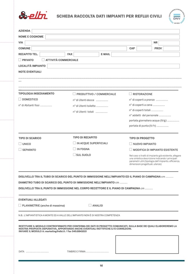 INVIARE IL MODULO A: marketing@elbi.it / Fax 049.8841610