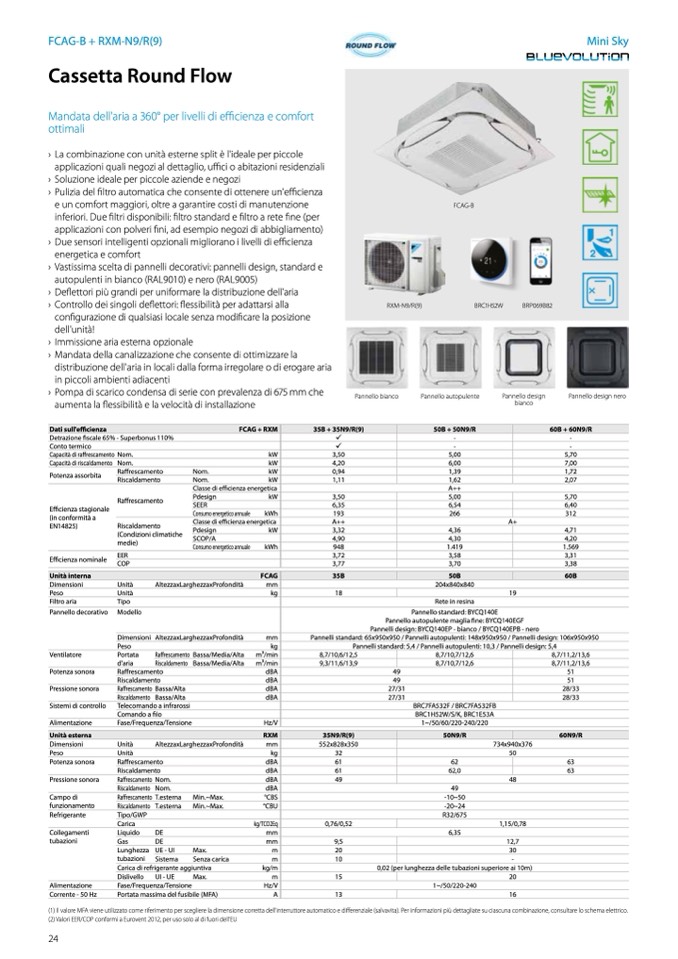 (1) Il valore MFA viene utilizzato come riferimento per scegliere la dimensione corretta dell'interruttore automatico e differenziale (salvavita). Per informazioni più dettagliate su ciascuna combinazione, consultare lo schema elettrico.