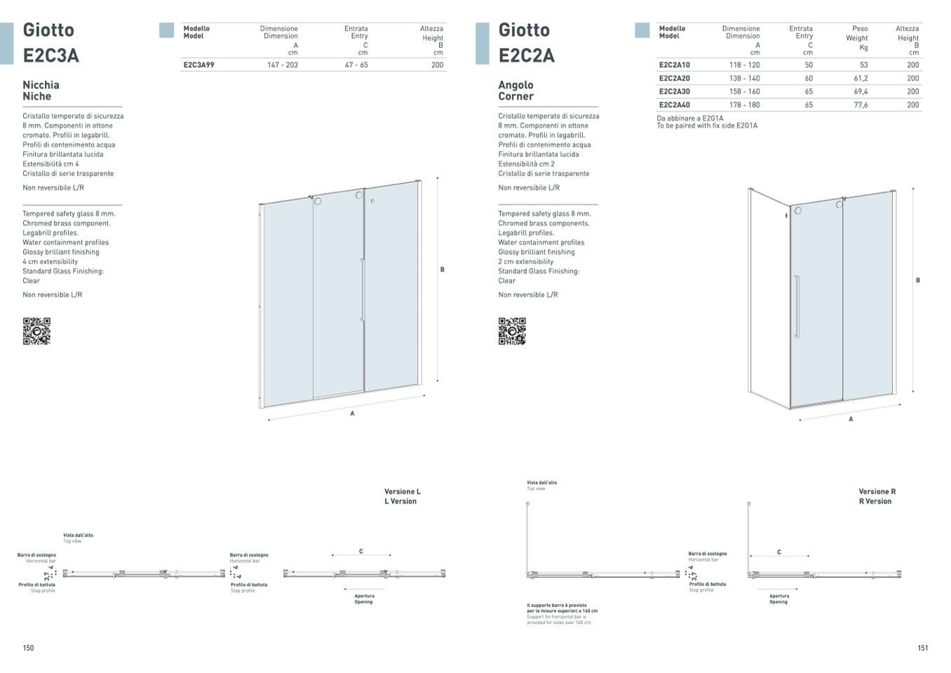 per le misure superiori a 160 cm