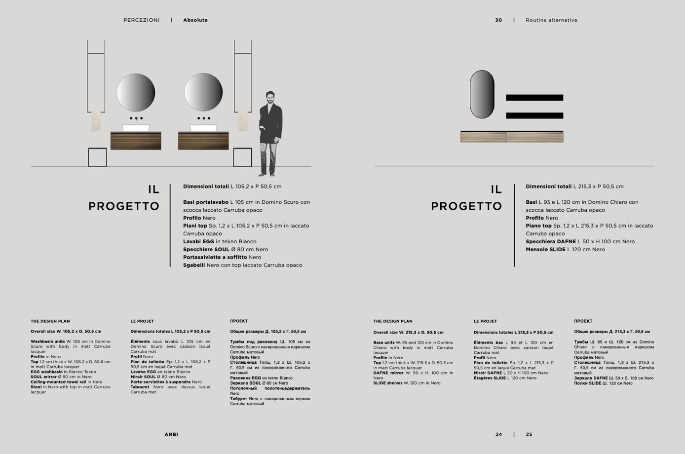 Basi portalavabo L 105 cm in Domino Scuro con