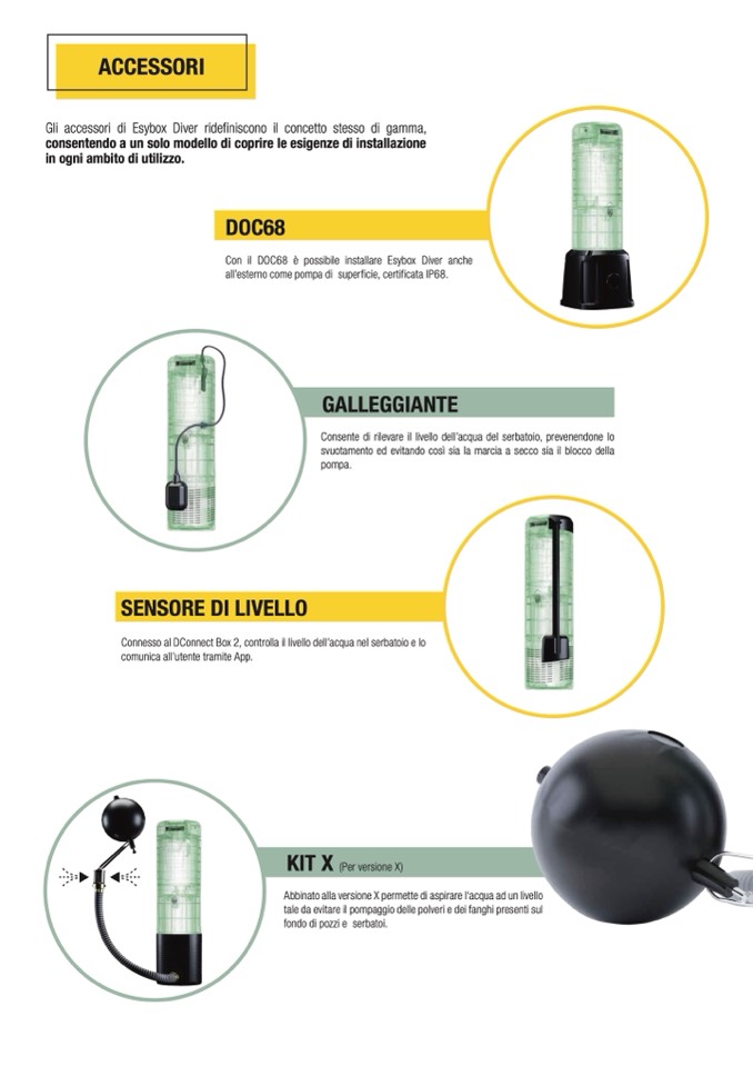 Abbinato alla versione X permette di aspirare l‘acqua ad un livello